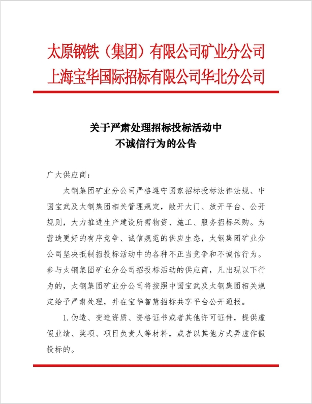 关于严肃处理招标投标活动中不诚信行为的公告