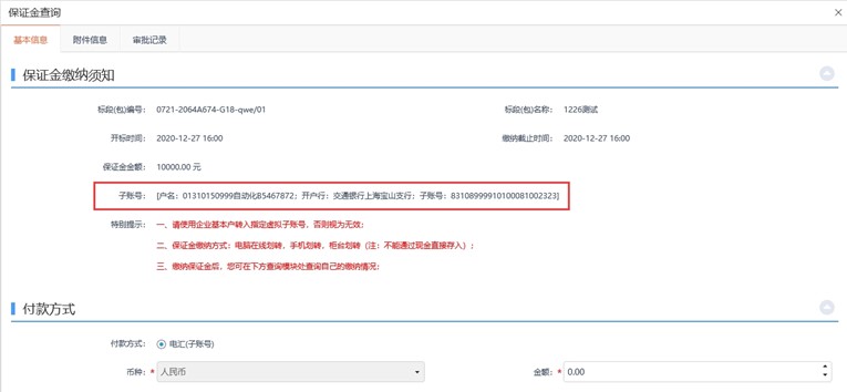 【我的项目】-【项目流程】-【投标保证金】模块和查看项目保证金子账号。按招标文件中规定的方式和金额缴纳保证金。