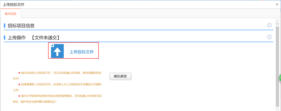2.点击“上传投标文件”按钮,进入“上传投标文件”页面,