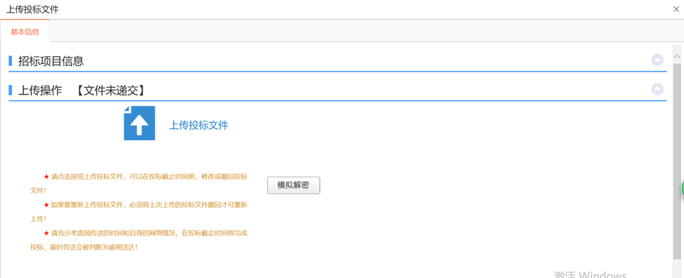 3.点击“上传投标文件”按钮,选择投标文件上传,