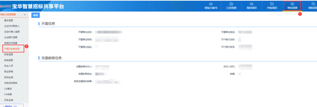 在【单位信息】-【开票及邮寄信息】内进行完善,填写完成后点击左上角【保存/修改】按钮。